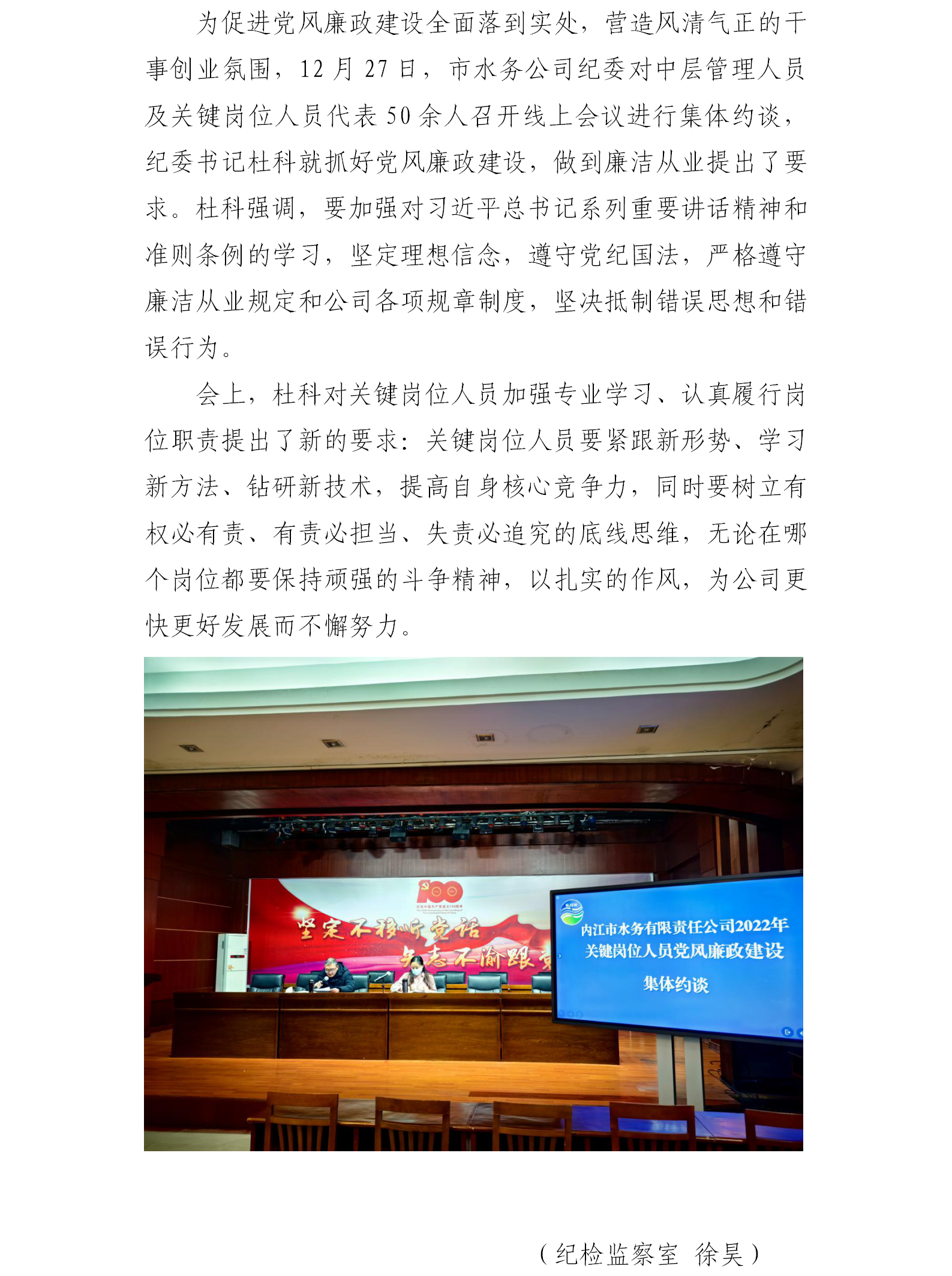 市水務(wù)公司紀(jì)委對關(guān)鍵崗位人員進(jìn)行集體約談