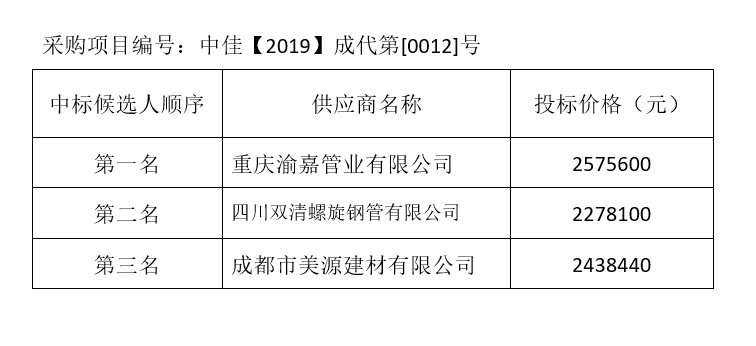 內(nèi)江市水務(wù)有限責(zé)任公司螺旋鋼管管材及管件采購(gòu)項(xiàng)目評(píng)標(biāo)結(jié)果公示