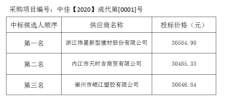 內(nèi)江市水務(wù)有限責(zé)任公司PE給水管及管件采購項(xiàng)目評(píng)標(biāo)結(jié)果公示