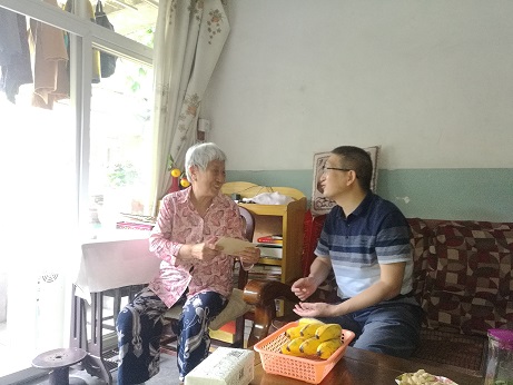 在于淑蘭、黃仁宇、張樹華、明素蘭四位老黨員干部居所,杜科同他們拉家常,關(guān)心老同志們身體狀況及生活情況,傾聽他們講述創(chuàng)業(yè)故事,叮囑老前輩在炎熱夏季注意防暑降溫,希望他們繼續(xù)為公司發(fā)展建言獻(xiàn)策,并衷心祝愿他們生活快樂、健康長壽。