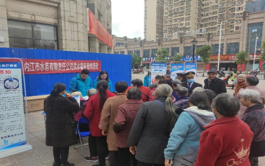10月27日下午,市水務公司客戶服務部、生技部、二次供水服務公司聯(lián)合開展了宣傳進社區(qū)活動。工作人員統(tǒng)一著裝,黨員佩戴黨徽,現(xiàn)場與內(nèi)江市漢祥小區(qū)居民開展“面對面、零距離”交流。講解二次供水、階梯水價、垃圾處理費、水費單價生成等用戶關(guān)心的問題,并提倡大家節(jié)約用水,宣傳水資源的重要性。