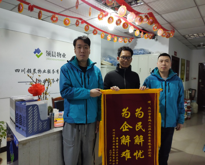 “我們小區(qū)二次加壓設(shè)備運(yùn)行異常,樓棟的9-18層已經(jīng)停水2天了,請你們幫我們檢查下……”。1月24日下午14時(shí),東興區(qū)海棠雅居物業(yè)工作人員向市水務(wù)公司豪鵬二次供水公司打來求助電話。經(jīng)查,該小區(qū)二次供水設(shè)施老舊,設(shè)備常年未進(jìn)行維護(hù)保養(yǎng),導(dǎo)致設(shè)備故障和中區(qū)出水管止回閥銹蝕堵塞。該小區(qū)二次供水設(shè)備尚未移交豪鵬公司管理,加之臨近春節(jié),物業(yè)專業(yè)維修人員缺乏,本著保障群眾用水安全的初心,豪鵬公司立即組織開展供水搶修工作,于當(dāng)日18時(shí)完成搶修并恢復(fù)正常供水。小區(qū)業(yè)主委員會、業(yè)主和小區(qū)物業(yè)對市水務(wù)公司“為群眾辦實(shí)事”優(yōu)質(zhì)服務(wù)點(diǎn)贊,被授予錦旗“為民解憂 為企解難”。