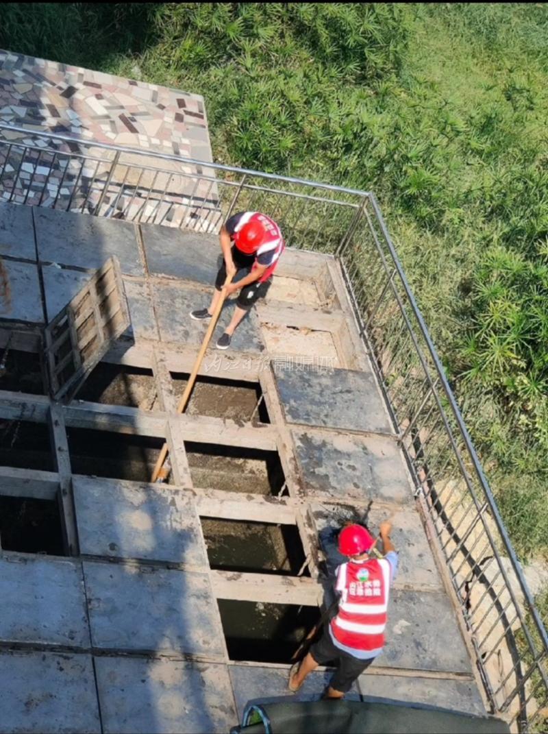 難度來自于高溫。泵房分布在甜城湖沿岸,緊挨城市主干道,為了不影響城市交通,清理時間一般安排在20時過后。最近持續(xù)高溫,即便深夜,內(nèi)江的溫度依然保持在36℃左右,在悶熱潮濕的環(huán)境里,工人們汗如雨下,很容易中暑。