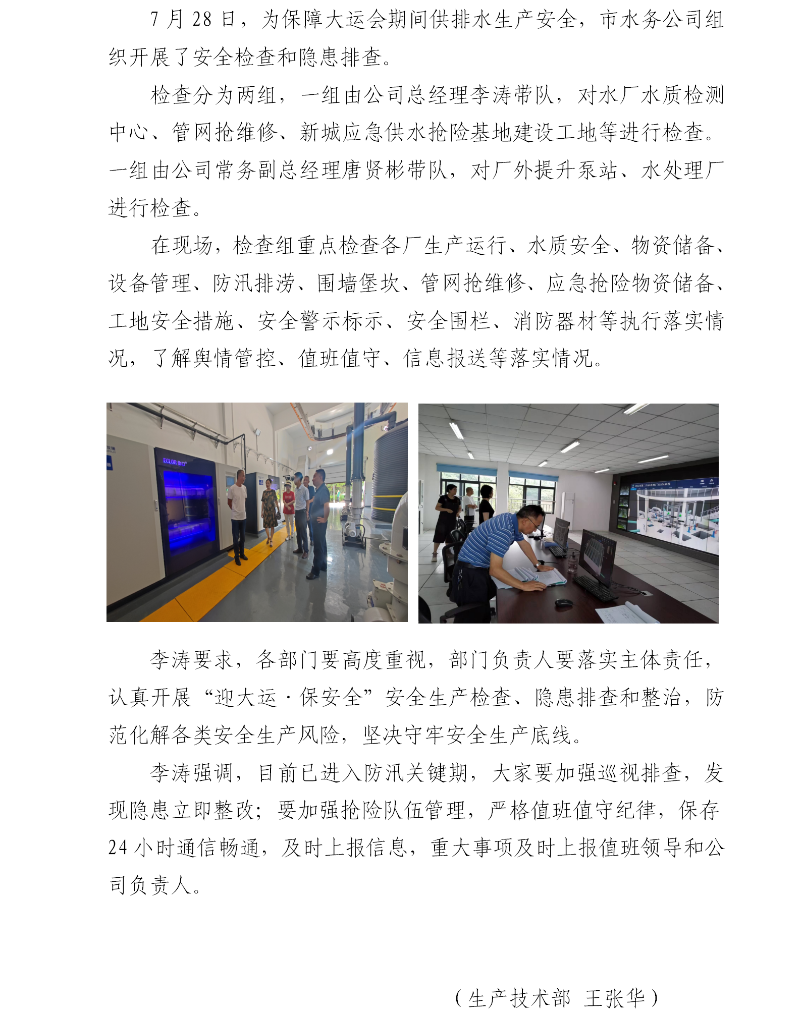 內(nèi)江市水務(wù)有限責(zé)任公司組織開(kāi)展“迎大運(yùn)·保安全”安全生產(chǎn)檢查