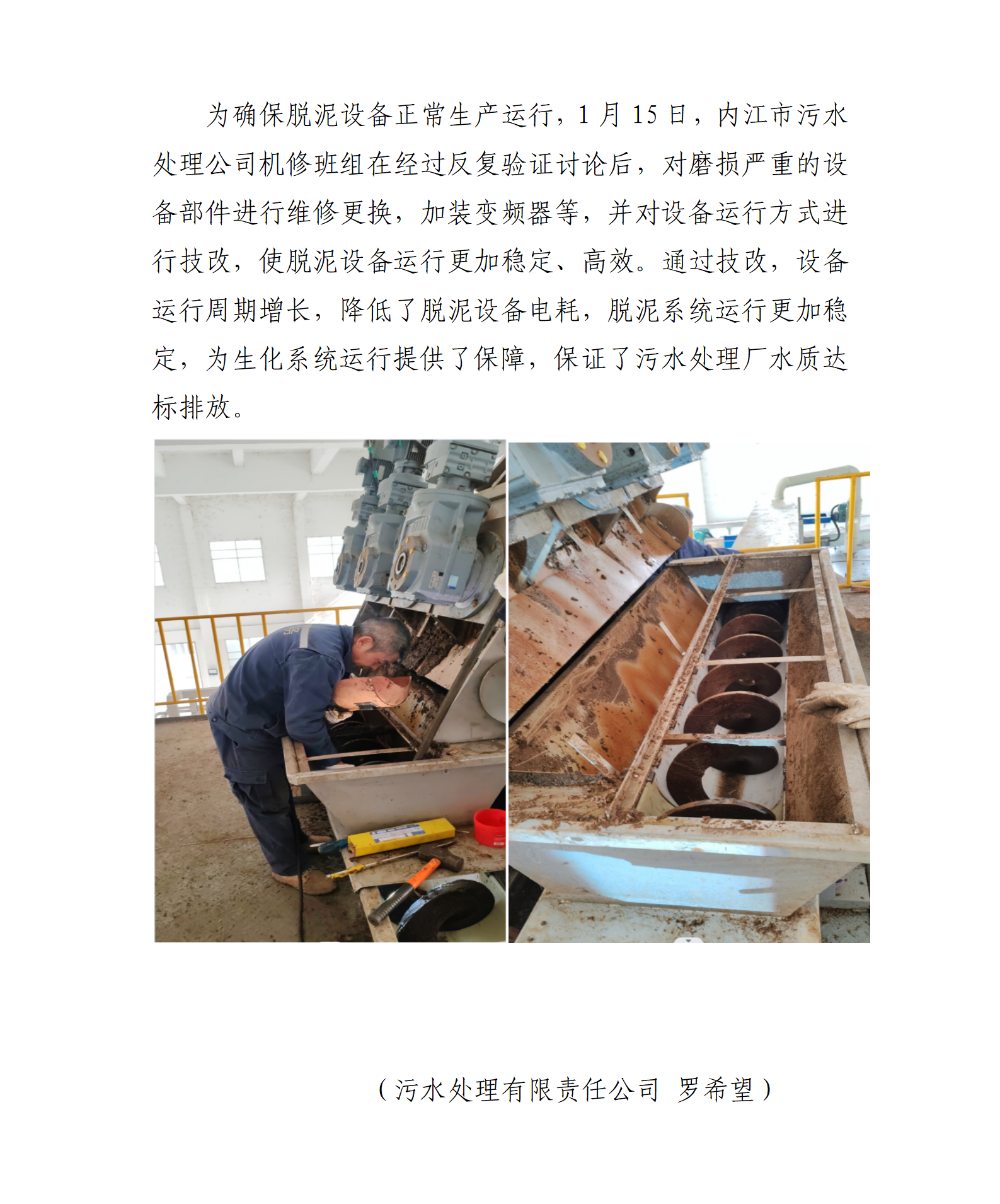 污水處理公司對脫泥設(shè)備進(jìn)行技改 確保污水達(dá)標(biāo)排放