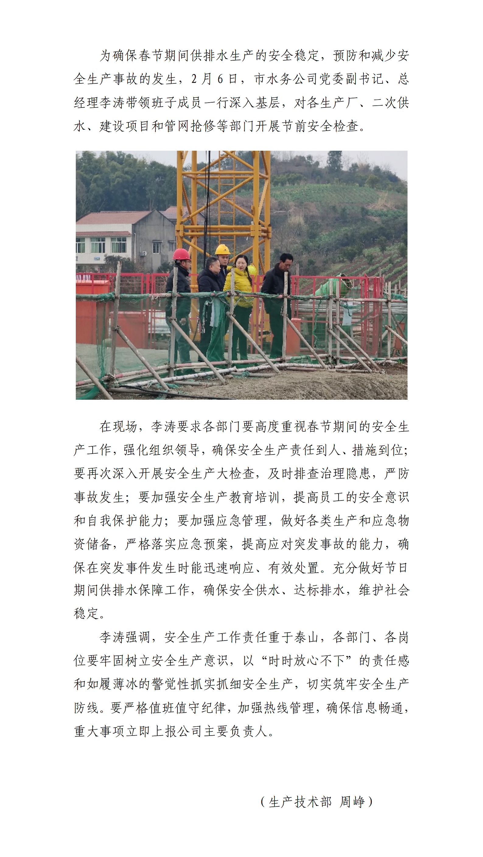 開展2024年春節(jié)前安全生產(chǎn)大檢查 確保春節(jié)供排水生產(chǎn)安全